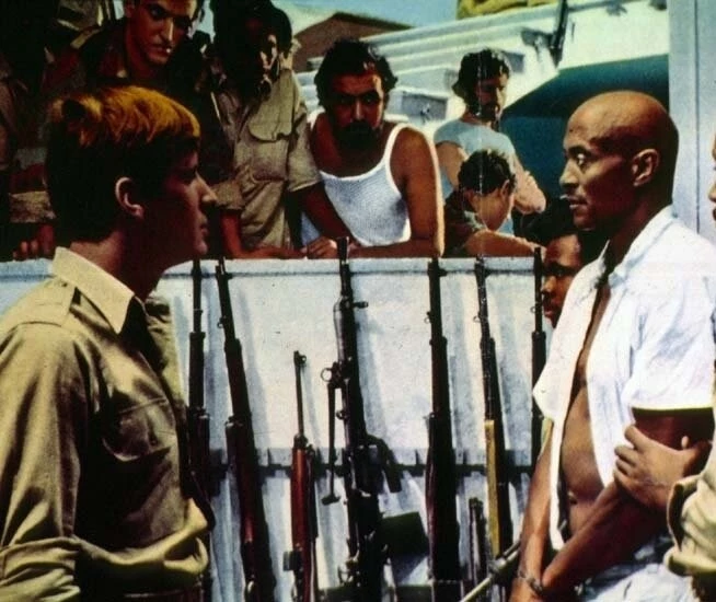 Фильм Сидящий по правую руку 1968 в котором произойдут развитие главных событий таких как: Однажды в Центральной Африке, в затерянной в глубине саванны деревушке несколько наемников-европейцев в форме цвета хаки арестовали некоего проповедника Мориса...